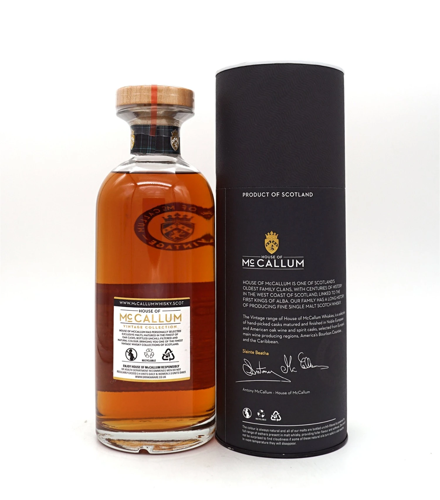 Die House of McCallum Vintage-Kollektion repräsentiert Fässer aus verschiedenen Regionen, verschiedenen Stilrichtungen, einige einzigartige Fässer und andere aus Brennereien, die am selben Tag und aus demselben Pot Still destilliert wurden. Jede Flasche aus jedem Fass ist ein Unikat. Einige sind fertig, ausgewählte handwerkliche Weinfässer von kleinen Weinproduzenten und werden von mir selbst ausgewählt.