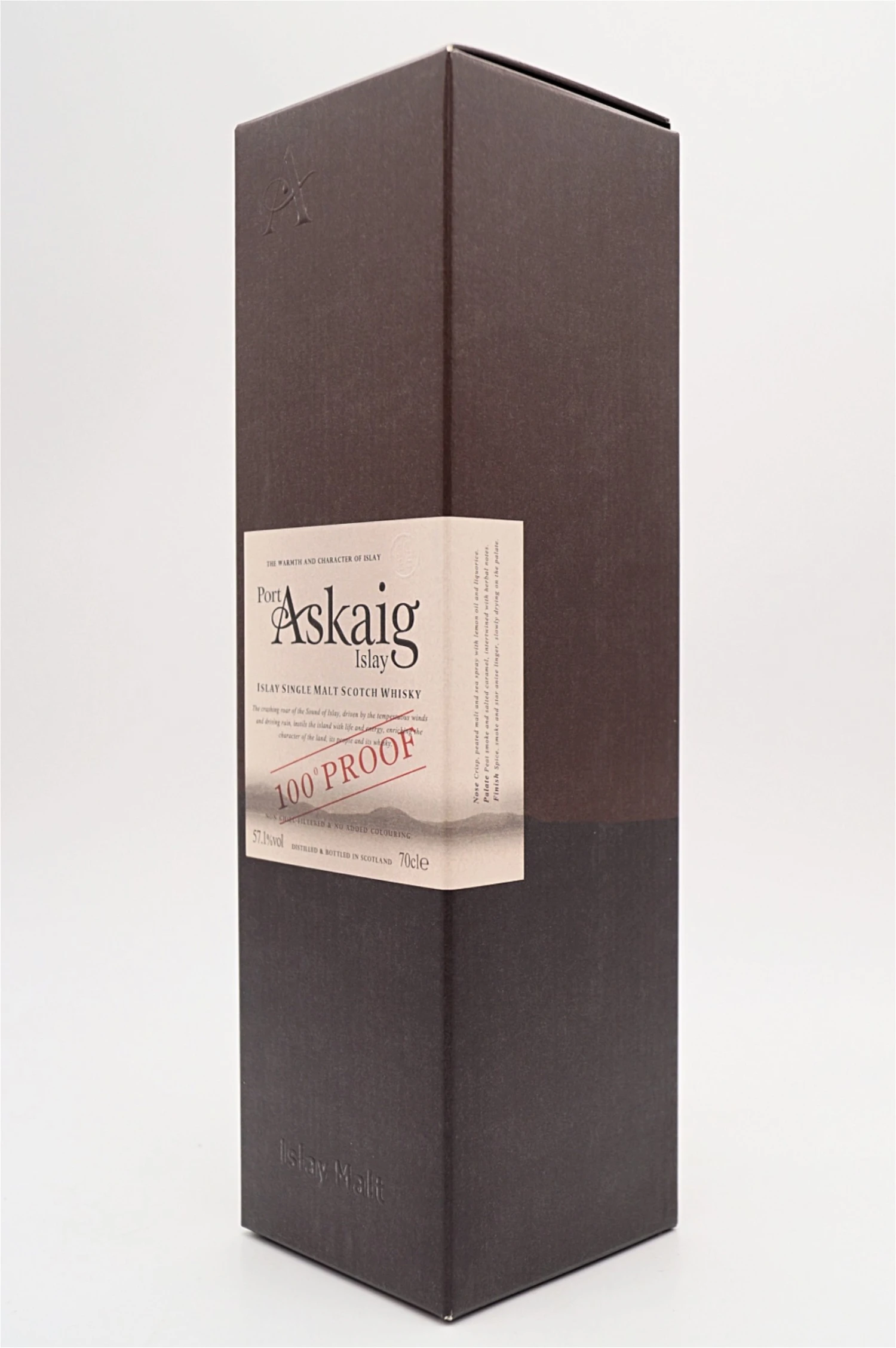 Port Askaig 100° Proof, eine der Kernausprägungen von Port Askaig. Dieser Scotch Whisky ist ein Single Malt in Fassstärke mit Noten von süßen Früchten, Torfrauch und Mineralität, was ihn zu einem Benchmark-Islay-Whisky und einem großartigen torfigen Dram für jeden Tag macht. Ein beständiger Favorit unter Whisky-Enthusiasten.