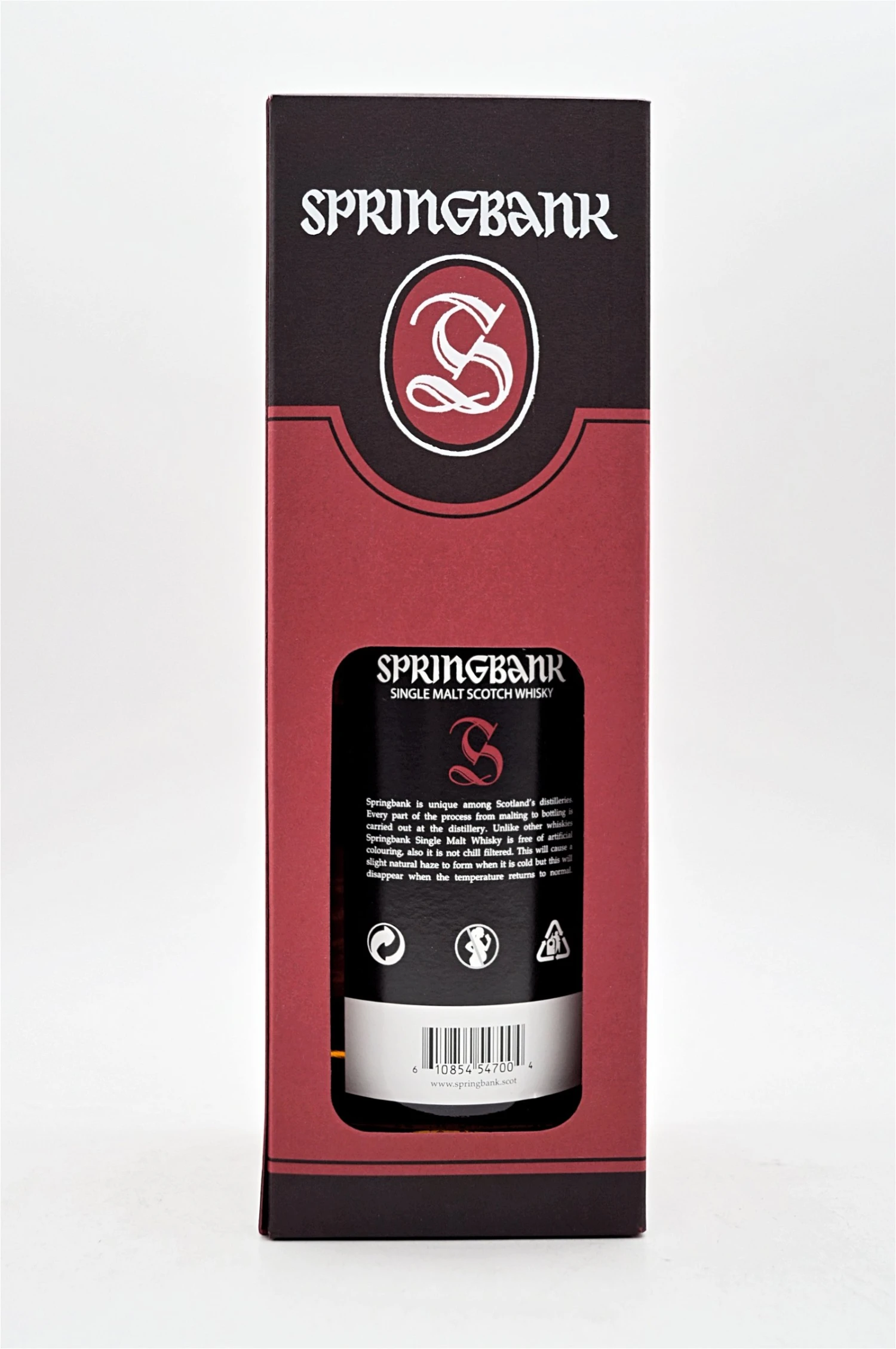 Dies ist die Auflage von 2020 des beliebten Springbank 12 Jahre in Fassstärke. Der authentische Single Malt wurde vor über 12 Jahren in der unabhängigen, familiengeführten Springbank Distillery in Campbeltown destilliert. Anschließend reifte er für mehr als 12 Jahre in einer Kombination aus Ex-Sherryfässern (45%), Ex-Bourbon (25%), Ex-Burgundy (25%) und Ex-Portweinfässern (5%). Diese Small Batch Abfüllung wurde unverdünnt, in kräftiger Fassstärke von 56,1% Vol. abgefüllt und, wie bei Springbank üblich, nicht kosmetisch nachbehandelt. Der Springbank 12 Jahre ist daher weder gefärbt, noch kühlgefiltert und hat all seine natürlichen Öle erhalten. Bei Zugabe von Wasser kann der Whisky daher leicht eintrüben.
