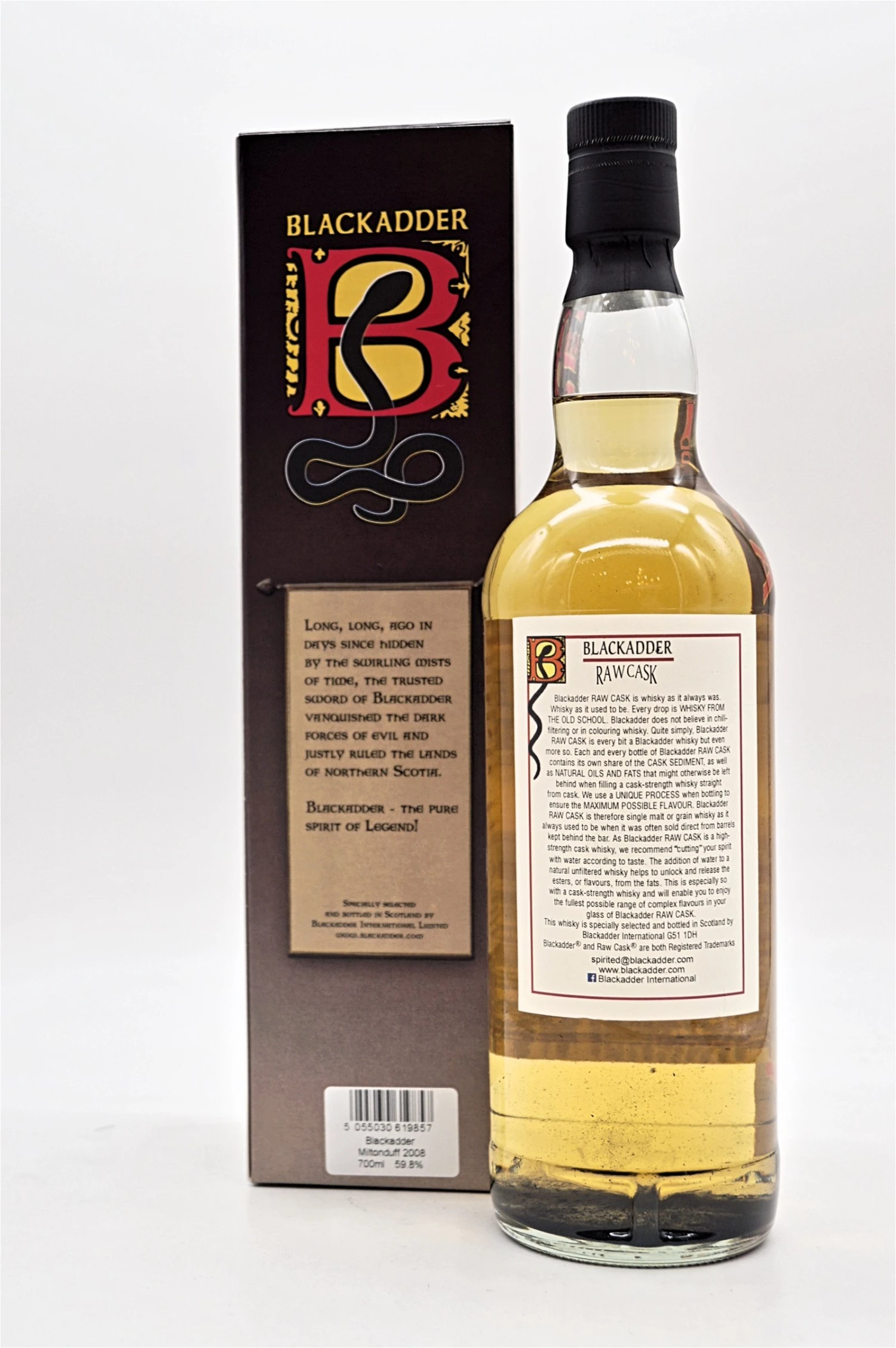 Die Brennerei Miltonduff liegt inmitten der Whiskyregion Speyside in den nord-östlichen Highlands in den Außenbezirken der Stadt Elgin und wurde auf den Ruinen der Pluscarden-Priorei (kleines Kloster) errichtet.. Sie verfügt über 3-Wash und 3-Spritistills Es gibt aktuell (Stand April 2013) keine sogenannte Originalabfüllung, allerdings mehrere von unabhängigen Abfüllern. Eine davon ist die hier vorliegende vom sicherlich bekannteren Abfüller Blackadder um den Whiskyautor und -experten Robin Tucek. Es handelt sich um eine Single Cask Abfüllung, d.h. die Ausbringungsmenge ist stark begrenzt. Es existieren aktuell nur 214 Flaschen. Destilliert wurde dieser Single Malt Whisky 05. März 2008, abgefüllt im Oktober 2020. Nicht kühlgefiltert! Ohne Farbstoff!