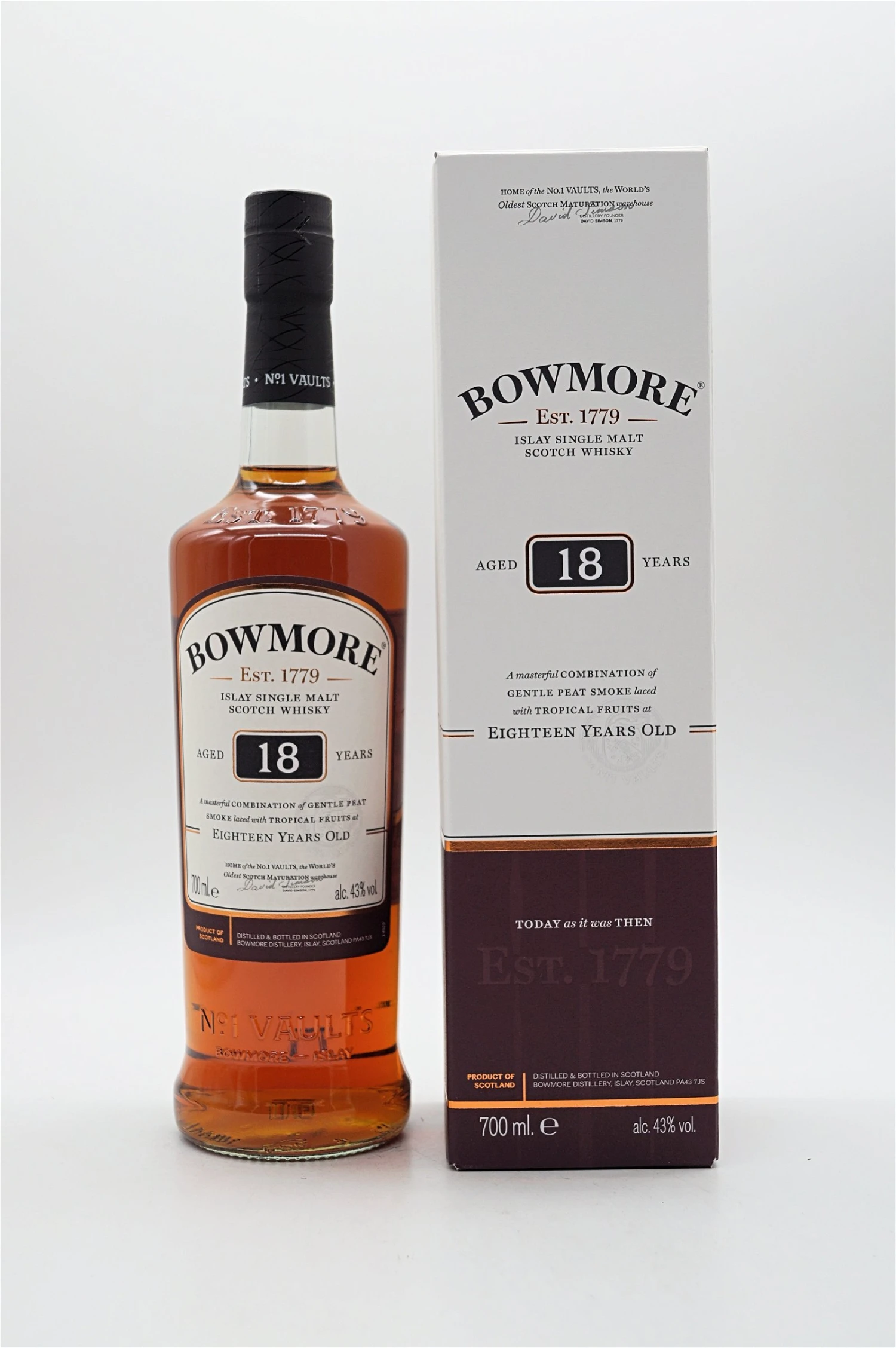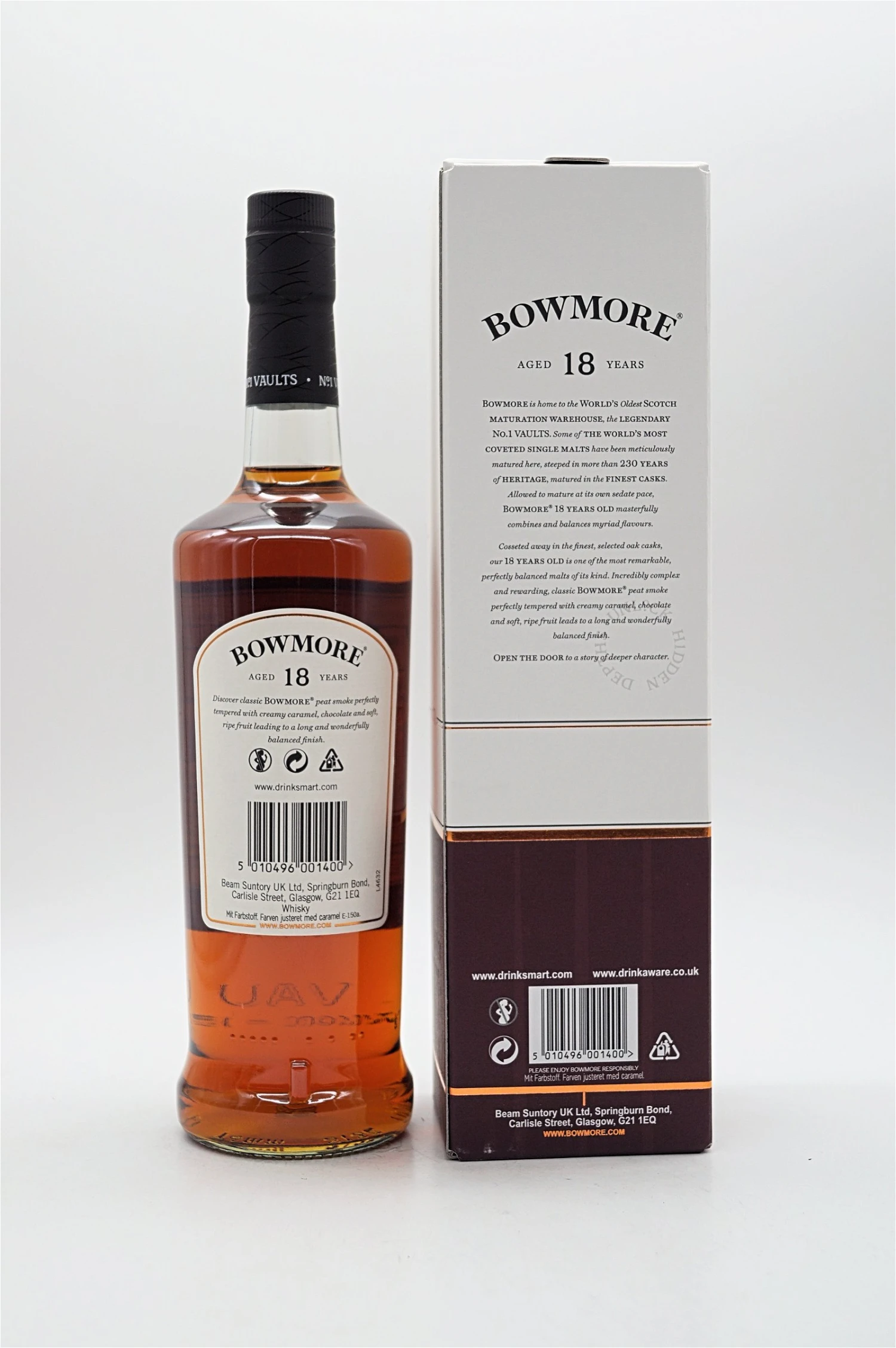 Die lange Reifezeit verbrachte dieser 18-jährige Bowmore in ehemaligen Bourbon- und Sherryfässern.