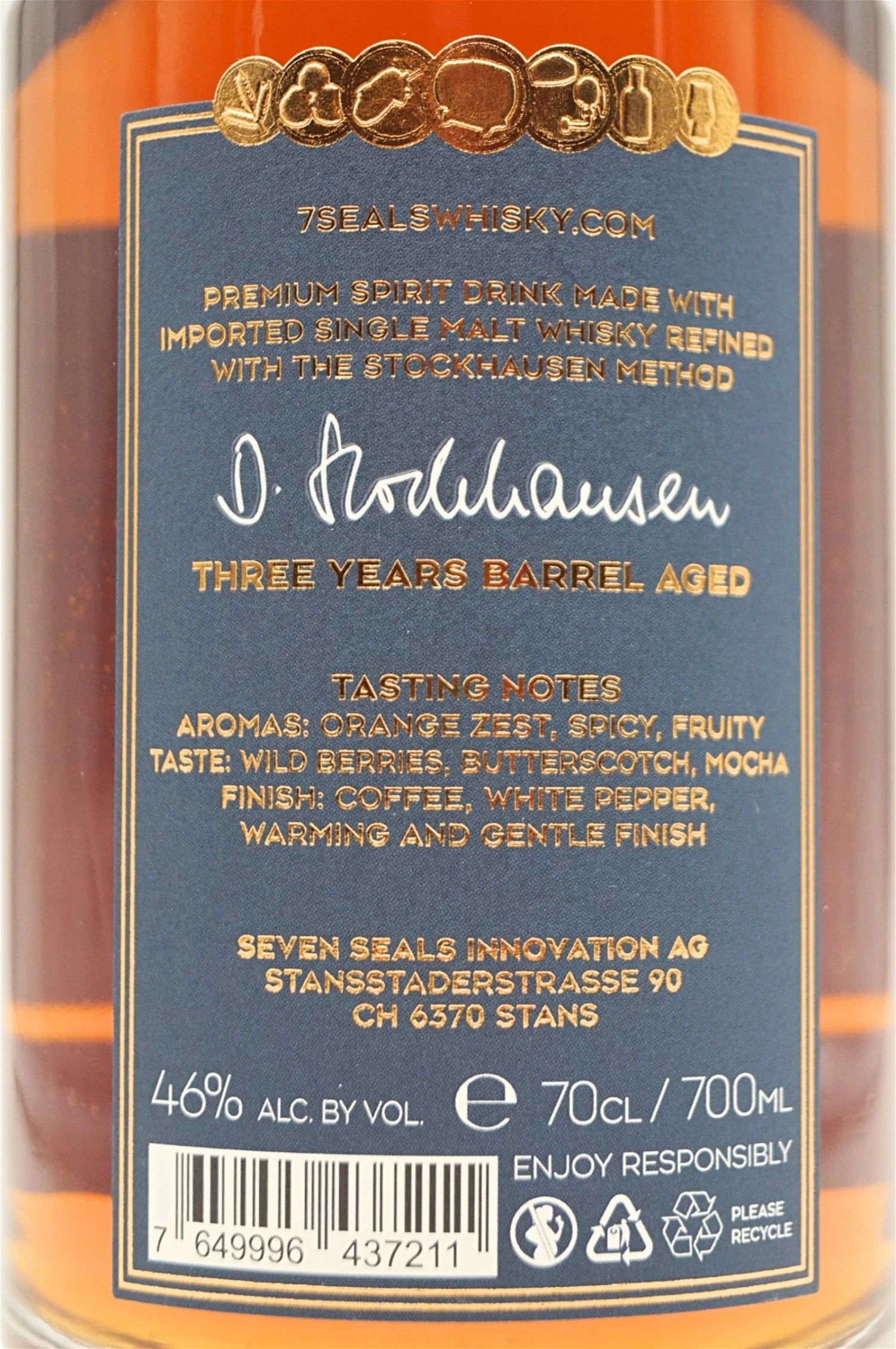Der Seven Seals Amarone Wood Finish begeistert mit intensiven Aromen von süßem Apfel und getrockneten Beeren gemischt mit der Würze von Vanille und einem Hauch Zimt. Abgerundet wird das Ganze durch die Süße von Toffee und Orangenschale. Harmonischer Geschmack von Karamell und kräftigem Mokka, dazu die fruchtige Komponente von Waldbeeren und eingelegten Birnen in Rotwein und würzigen Ingwerkeksen. Der Abgang ist gut ausbalanciert und geprägt von leicht bitterem Kaffee und wärmendem weißem Pfeffer: ein mittellanger, weicher und weicher Abgang.