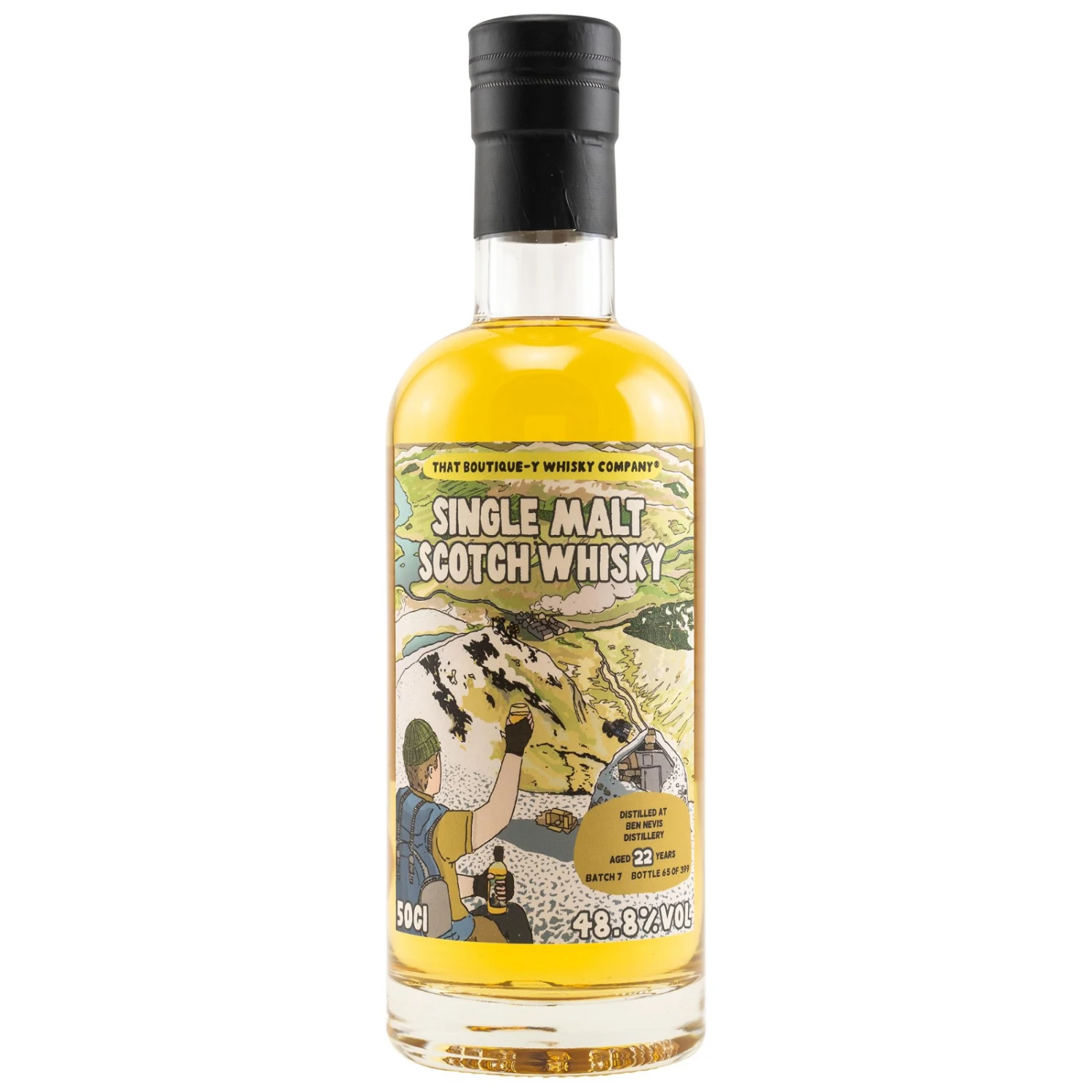 Dieser aus den Highlands stammende Whisky, ist ein 22 Jahre alter Ben Nevis, der trotz der langen Reifezeit noch 48,8% vol. liefert. Abgefüllt wurde er in 399 Flaschen.