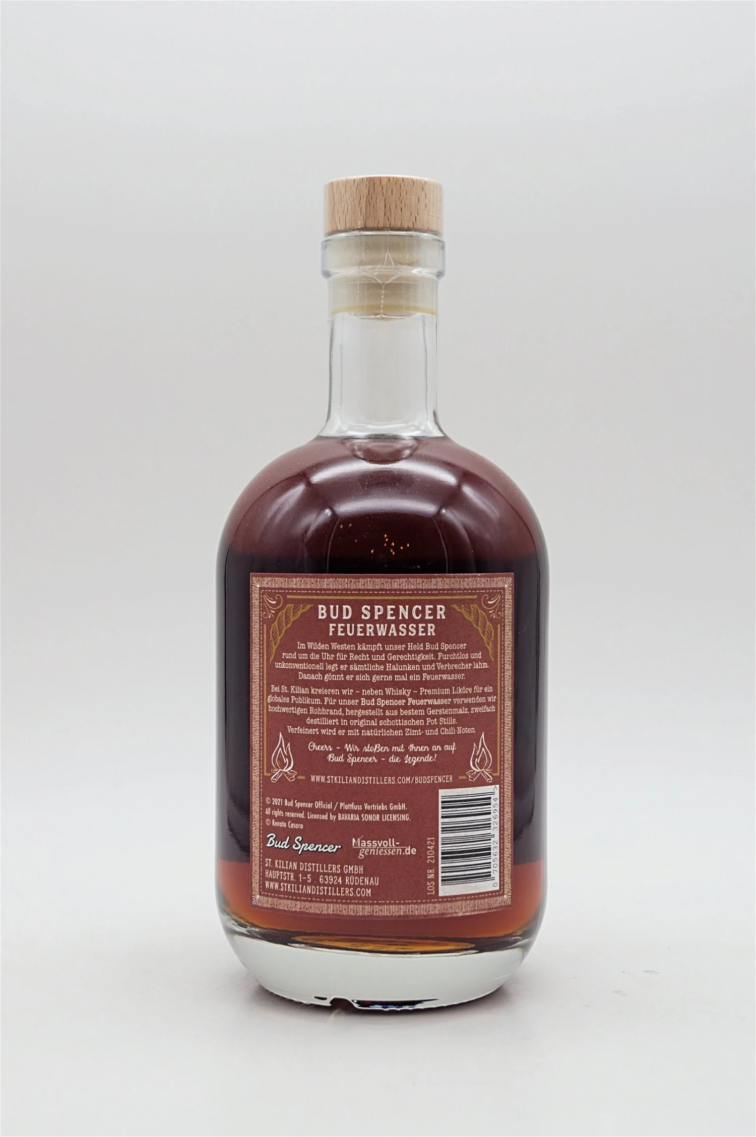 Bud Spencer Feuerwasser ist ein Zimt-Chili-Likör auf Basis des St. Kilian Single Malt Spirits. Das Feuerwasser gibt es in denselben bauchigen 0,7l Flaschen, in denen auch die beiden erfolgreichen Bud Spencer-Whiskys erhältlich sind. Mit einem für einen Likör satten Alkoholgehalt von 33 % vol. und der Kombination von würziger Zimtnote und angenehmer Chili-Schärfe wird das Feuerwasser ein echtes Highlight werden. Ob an heißen Abenden oder in kalten Nächten, BUD SPENCER FEUERWASSER verspricht Hochgenuss das ganze Jahr über.