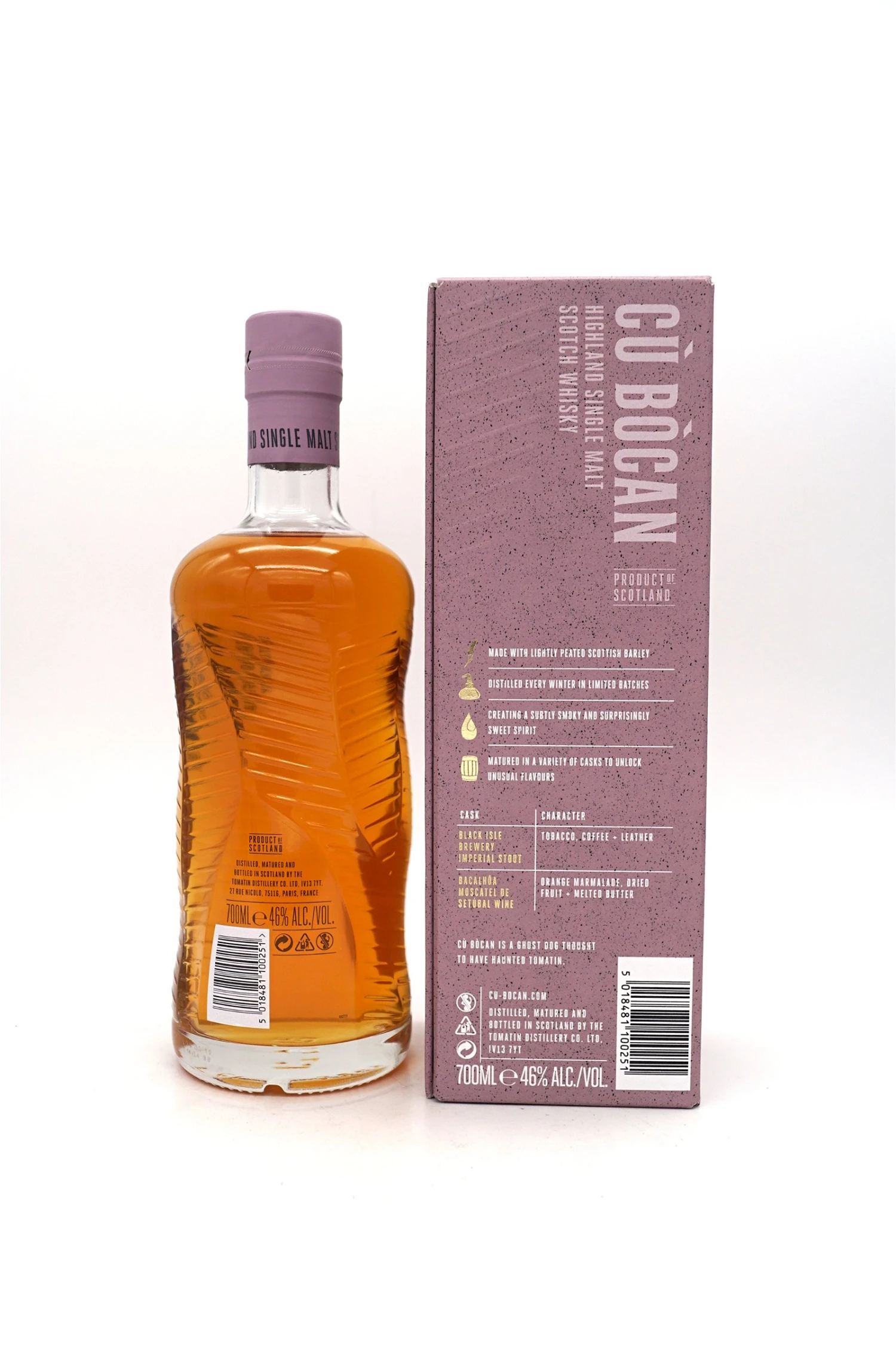 Cù Bòcan ist ein experimenteller Highland Single Malt, der die Feinheiten des Rauches und der perfekt ausbalancierten Süße zelebriert und innovative Finishes erforscht, um Whiskys voller Intrigen und Überraschungen zu kreieren.