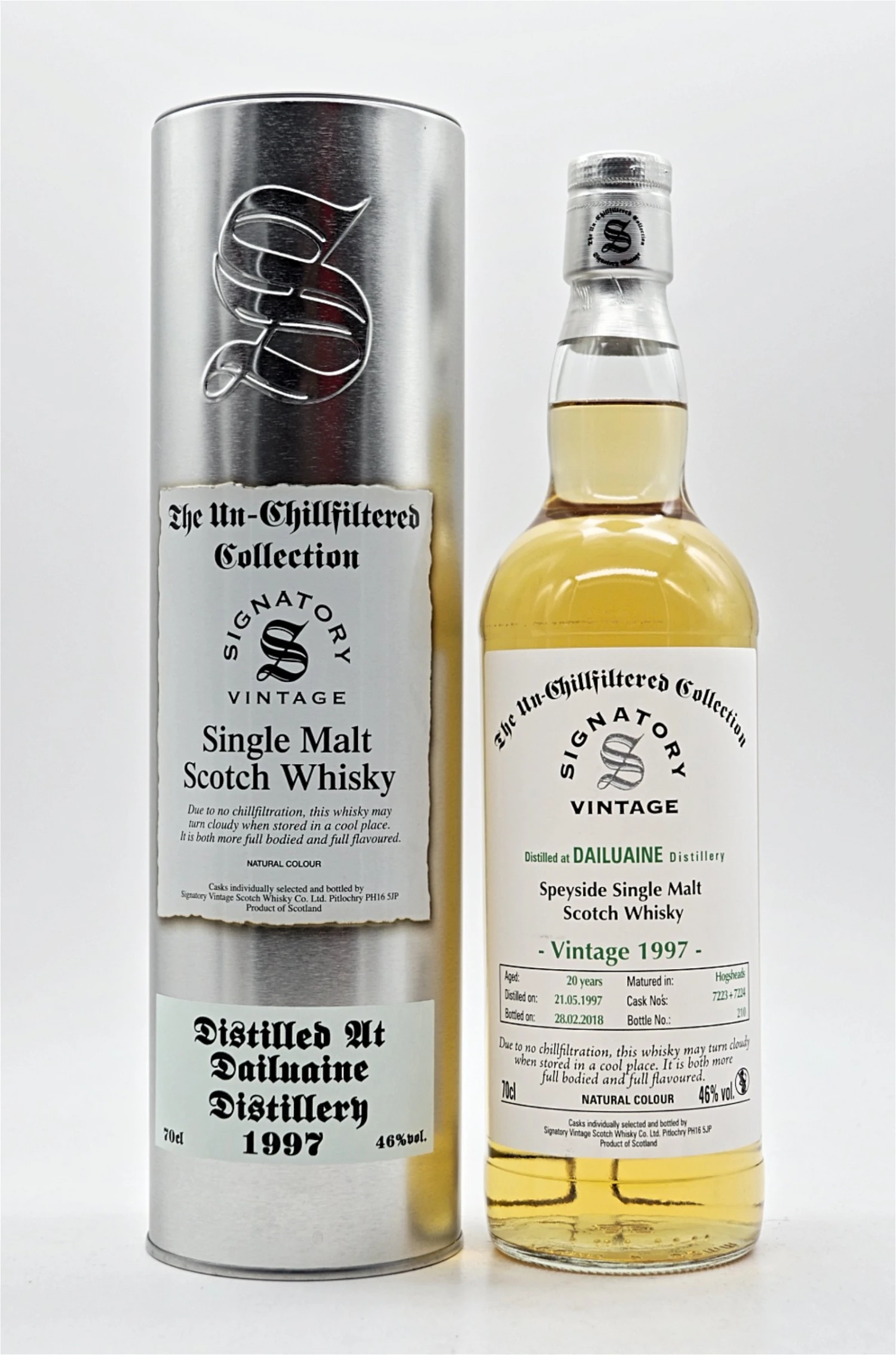 Der hier vorliegende Dailuaine wurde nicht von der Brennerei selbst, sondern vom unabhängigen Abfüller Signatory aus dem Fass in die Flasche gebracht. Signatory Vintage ist einer der größten unabhängigen Abfüller für Scotch Whisky auf dem deutschen Markt. Der Abfüller aus dem beschaulichen Städtchen Pitlochry, dem auch die Edradour Brennerei gehört, füllt seine Single Malt Whiskys in unterschiedlichen Serien ab. Darunter die Un-Chillfiltered Collection (bei der auf die Kühlfiltration verzichtet wird) und die Cask Strength Collection (in dieser werden die Whiskys in Fassstärke abgefüllt). Besonders exklusiv ist die Signatory Rare Cask Reihe. Signatory füllt in der Regel Single Casks oder kleine Batches aus maximal 2-3 Fässern ab. Der Abfüller ist sehr authentisch, und so sind auch die Whiskys. Naturbelassen, von hoher Qualität und fair bepreist. Man verzichtet auf teures Marketing und setzt stattdessen auf guten Whisky zum fairen Preis.
