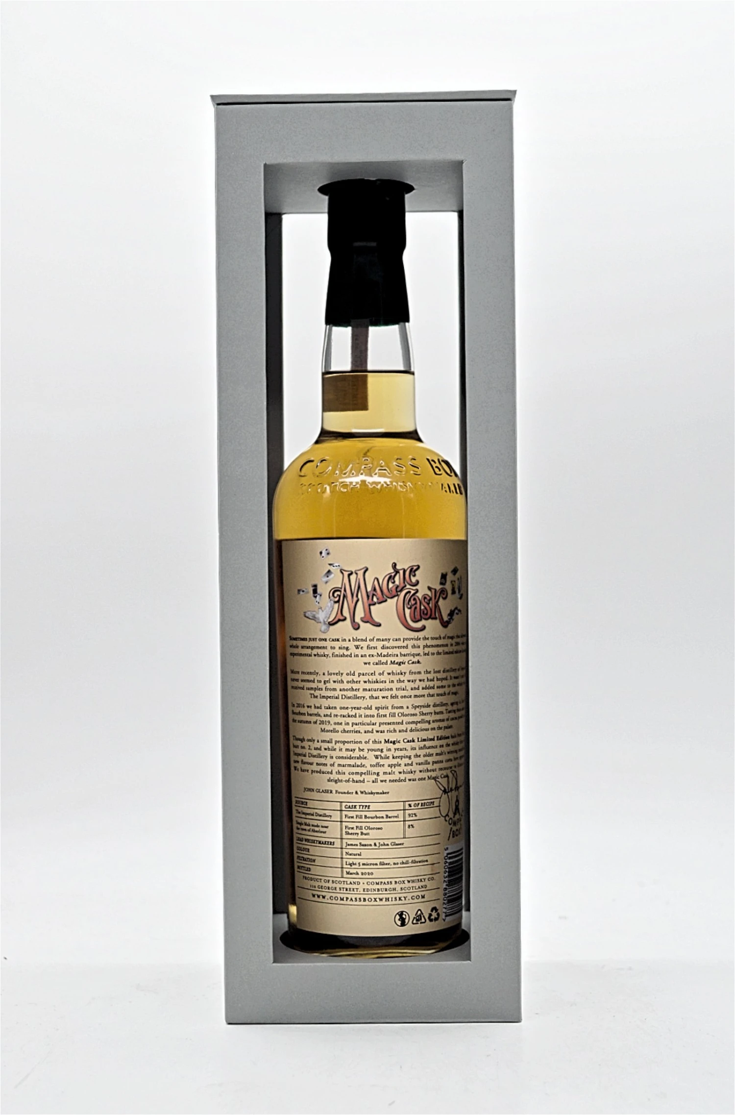 Für diejenigen, die die üppige Fruchtigkeit und Fülle des Körpers in ihren Malt Whiskys schätzen, wird sich das Warten lohnen. Schenken Sie nach dem Abendessen das Magic Cask ein und genießen Sie sein Medley aus Herbstfrüchten und dunkler Schokolade.