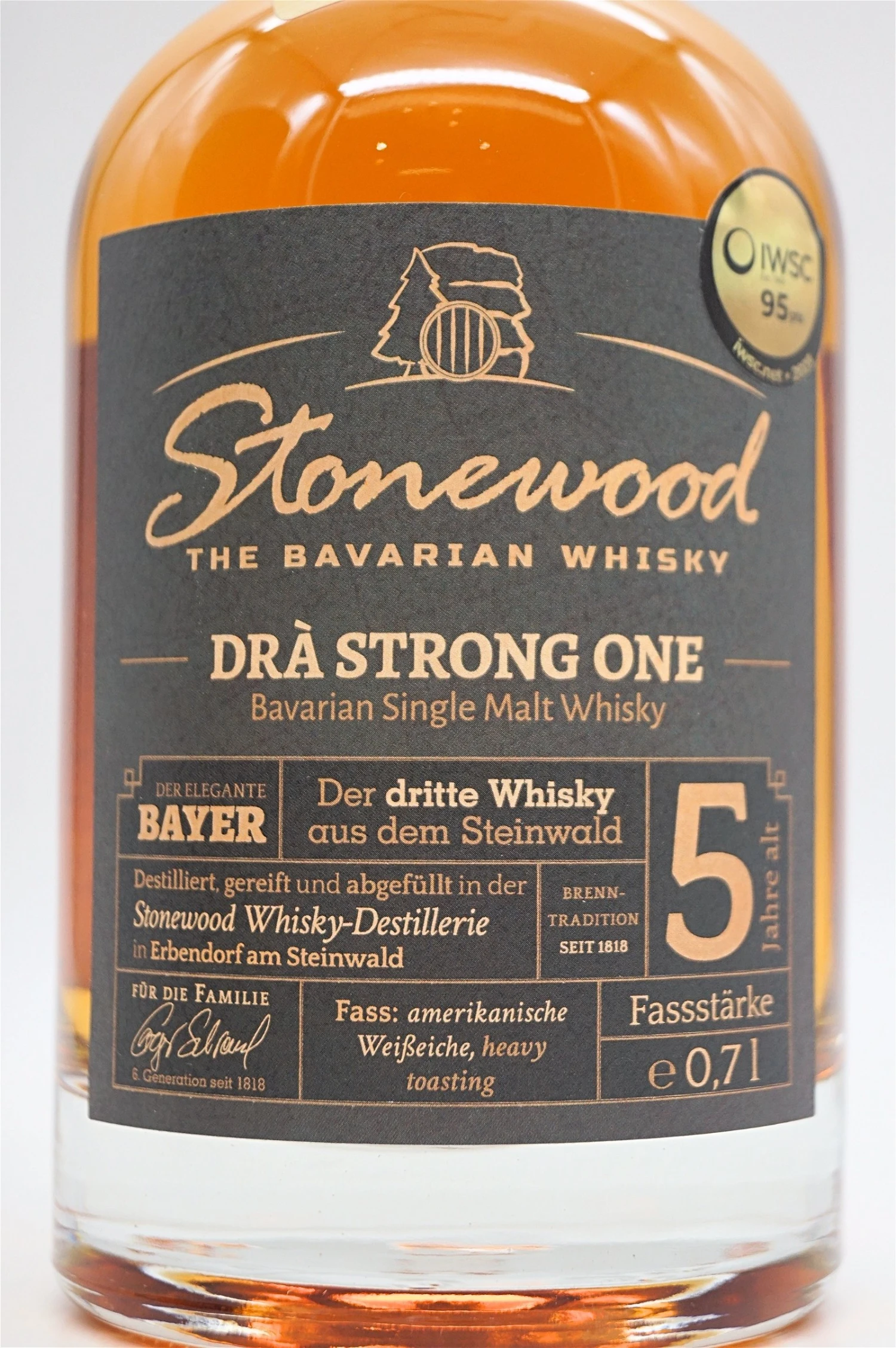 Der 5 Jahre alte Dra Strong One Single Malt Whisky wird im Vergleich zu dem klassischem Dra Strong mit 48,90% Vol. abgefüllt und kann so die Aromen von Kaffee, Malz und Schokolade noch besser binden.
