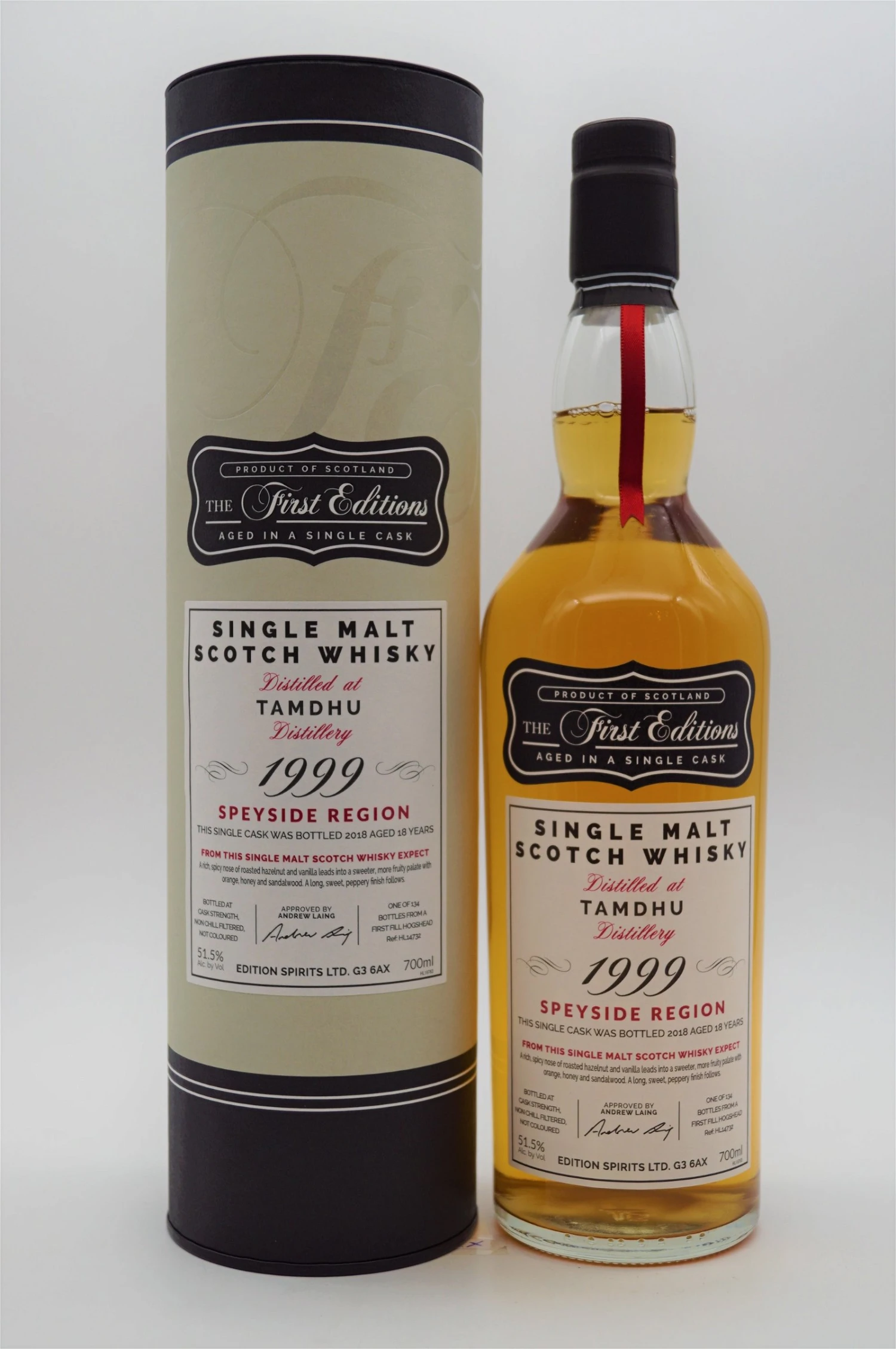 The First Editions hat sich fassstarken Whiskys verschrieben, die sich großer Beliebtheit erfreuen. Hinter dem Label The First Editions steht der unabhängige Abfüller Edition Spirits. Gegründet wurde die Firma 2010 von Andrew und Scott Laing in Glasgow, Schottland. Der Ursprung jedoch entstammt den Jahrzehnten, als die beiden in und um die schottische Whisky-Tradition aufwuchsen, und wo Ihnen der Respekt und die Passion für das „Water of Life“ eingeflößt wurde. Das First Editions-Etikett wurde inspiriert durch die klassische Eleganz eines antiken Manuskripts und schmückt ihre Einzelfassabfüllungen in Cask Strength. Sämtliche First Editions-Abfüllungen sind nicht nur immer fassstark, sondern natürlich auch ohne Kältefiltration oder Farbzusätze abgefüllt.