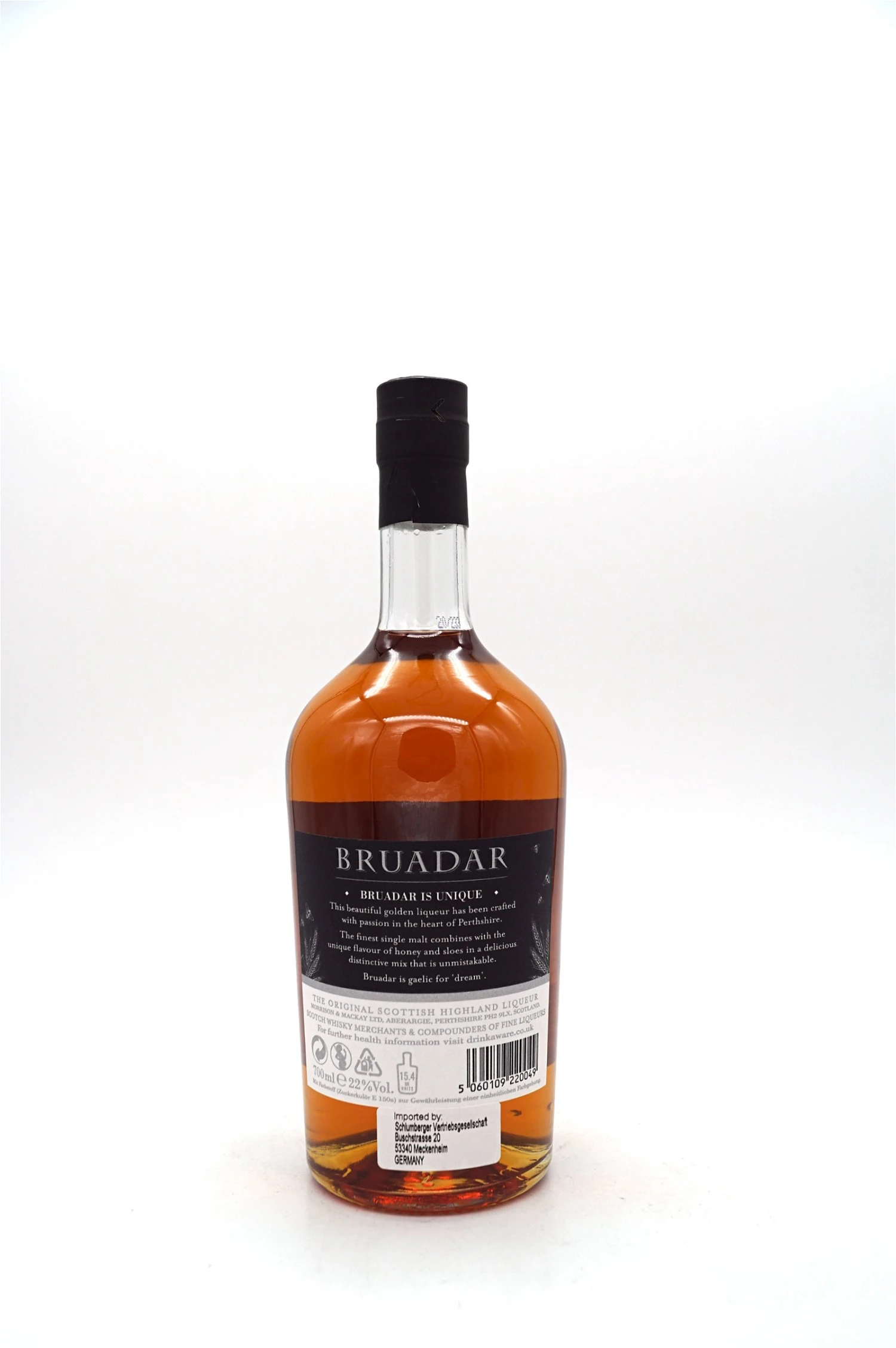 Schon einzigartig durch die Basis reinen Single Malt Whiskys, wird Bruadar durch die Zugabe von Honig und Schlehen optimiert. Diese Zutaten verleihen dem Likör eine wundervolle natürliche Süße, durch die aber auch der Charakter der Schlehen klar durchscheint. Mit einem Alkoholgehalt von leichten 22 % profitiert Bruadar davon leichter zu sein als andere Liköre auf Whisky Basis. Diese Leichtigkeit macht Bruadar zu einem perfekten Begleiter zu den schlichten Vergnügen des Outdoor Lebens.