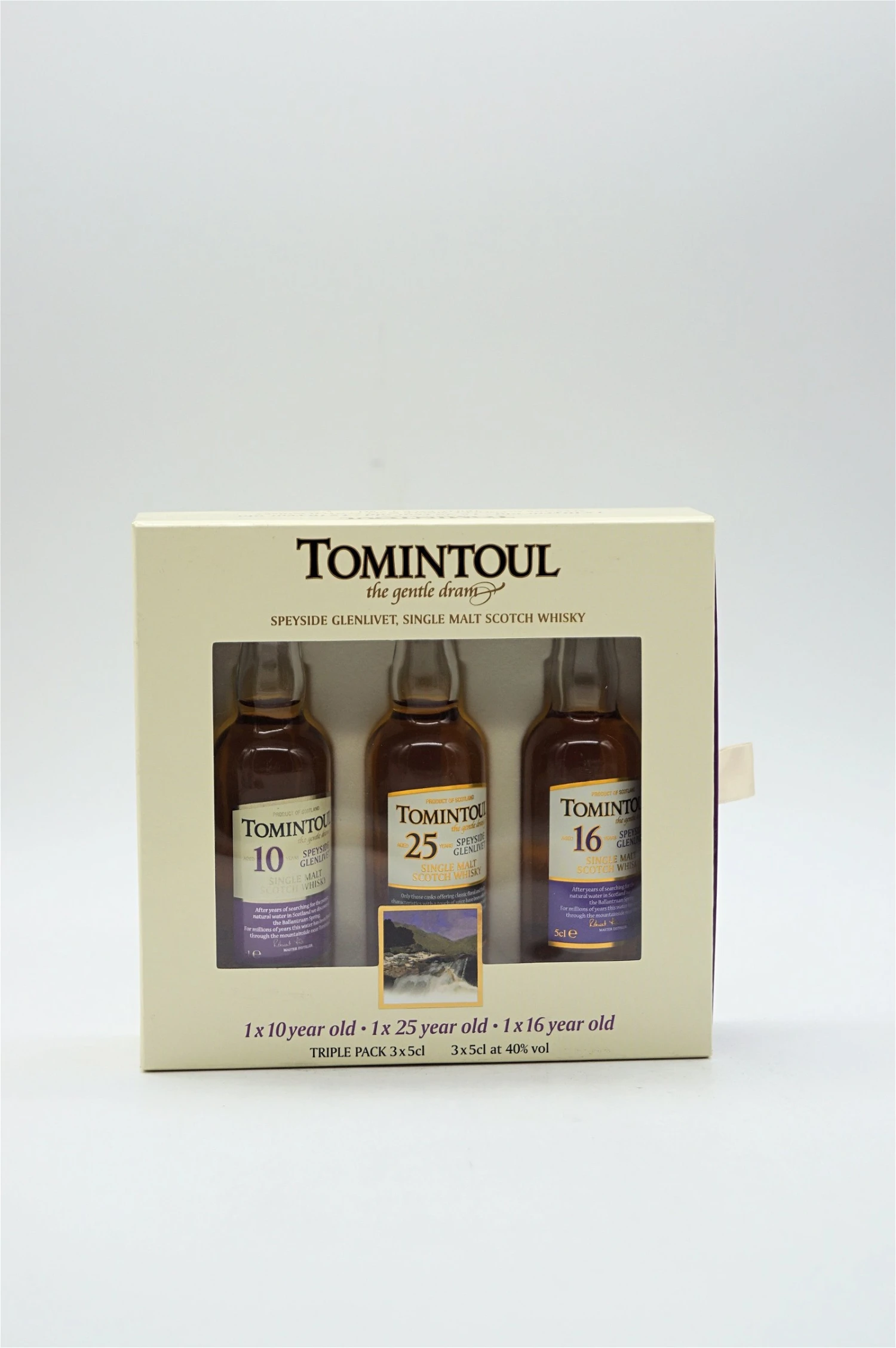 Das Tomintoul Triple Pack enthält 3 Miniaturen je 0,05l im Alter von 10, 16 und 25 Jahren.